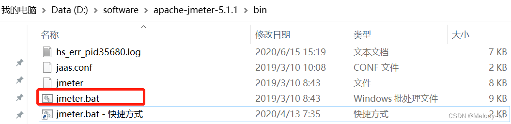 找到Jmeter解压文件,进入到bin目录下,双击jmeter.bat文件即可运行Jmeter