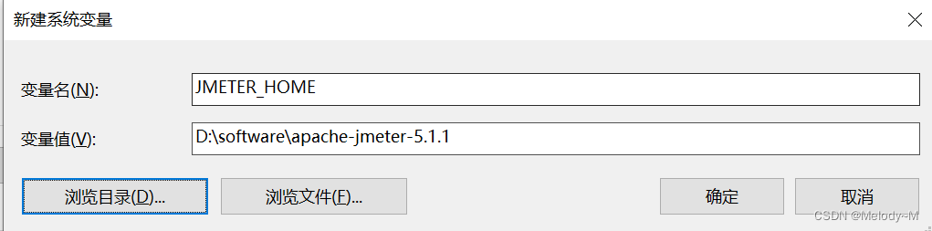 新建名为:变量名:“JMETER _HOME”,变量值为jmeter文件的目录路径