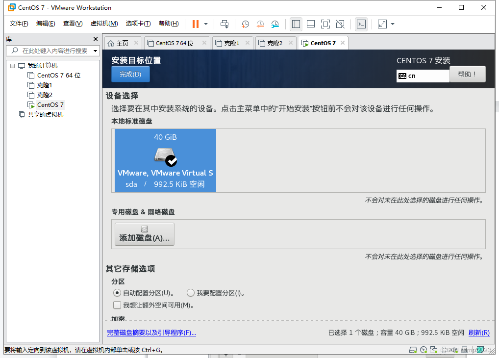 图2-4 选择硬盘,自动分区