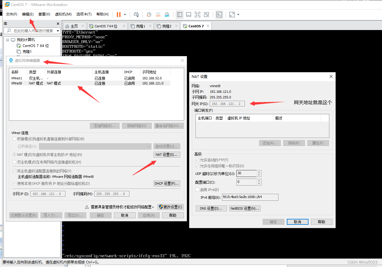 命令:vi /etc/sysconfig/network-scripts/ifcfg-ens33