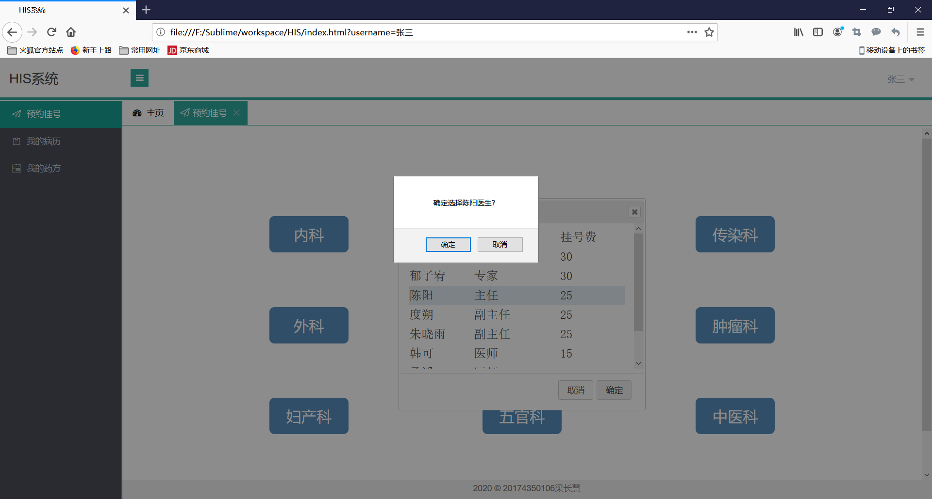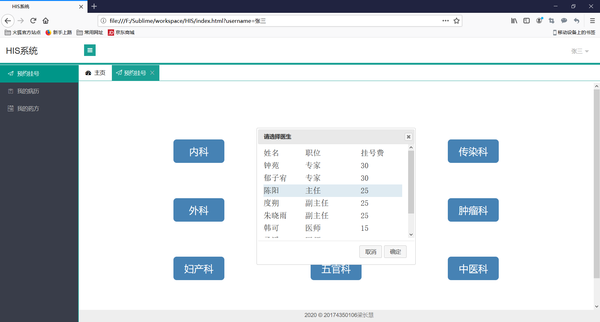 2、挂号(选择科室,医生)