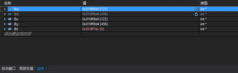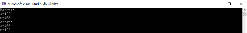 我们可以发现:a与x,b与y的地址相同,所以我们可以知道,所谓的"引用变量"其实就是一个变量的别名,两者指向同一个地址的内容,对引用变量的操作即是对正式变量的操作。所以利用swap函数,可以成功交换a、b两值。