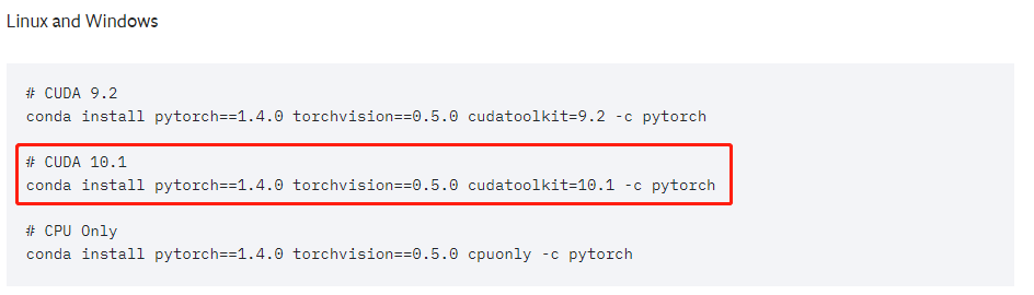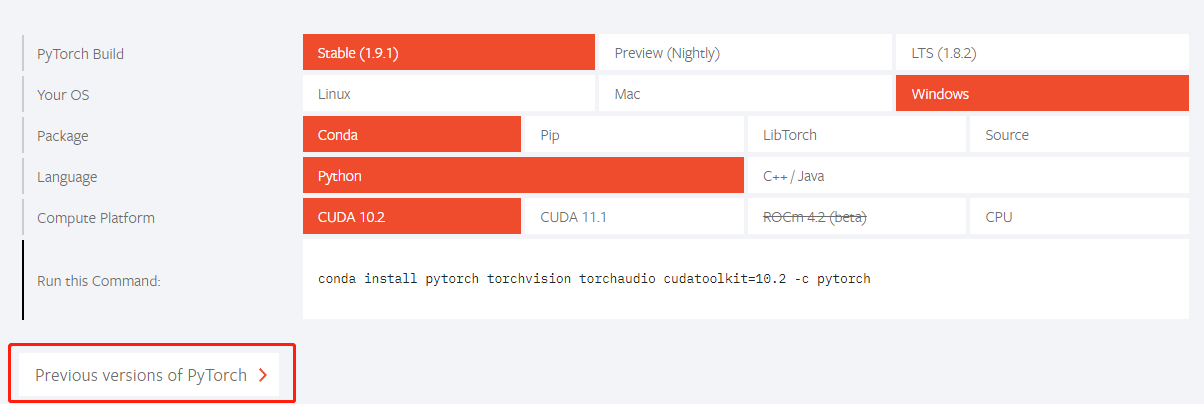 先去pytorch官网查看和自己cuda版本相符的torch版本号。