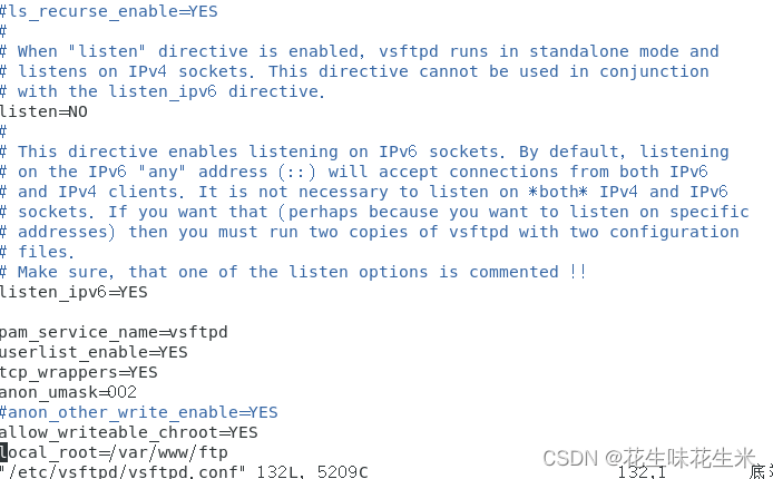 2.通过 vim /etc/vsftpd/vsftpd.conf配置vsftpd信息