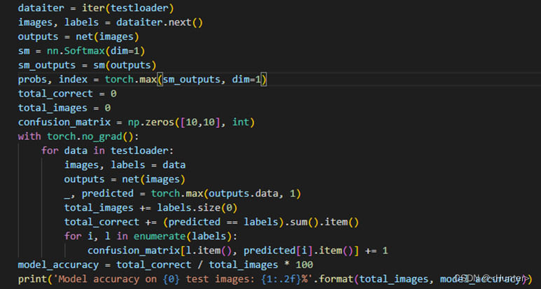 print('Accuracy of the model on the test images: {} %'.format(100 * correct / total))