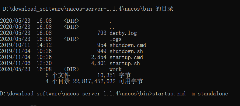 3、执行 startup.cmd -m standalone 出现完成等字样