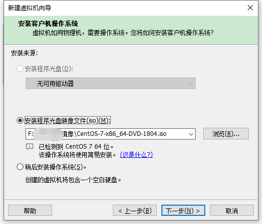 7.首先,将下载好的iso映像文件选中,点击确定,就可以开启此虚拟机,正式进入centos7安装界面了