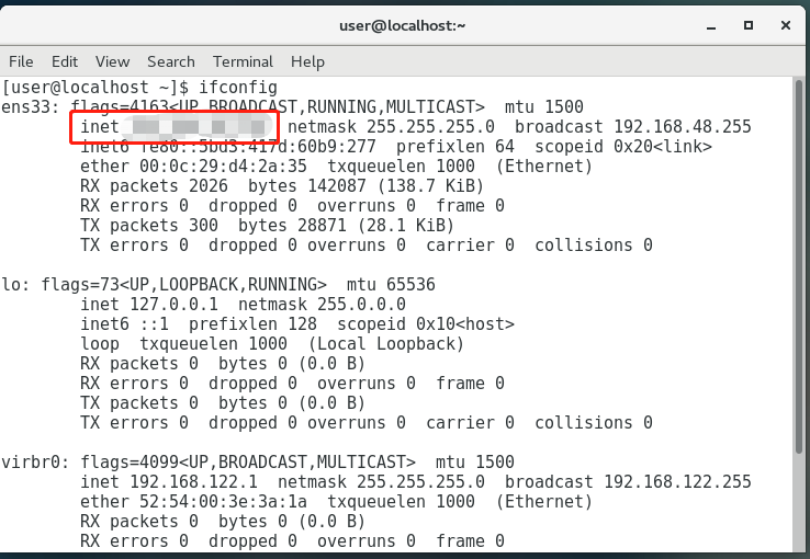 12.输入ifconfig即可查看虚拟机对应的ip地址