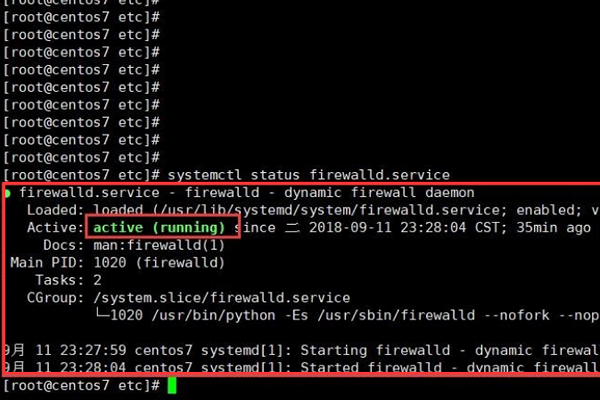 然后在下方可以查看得到“active(running)”,此时说明防火墙已经打开了。