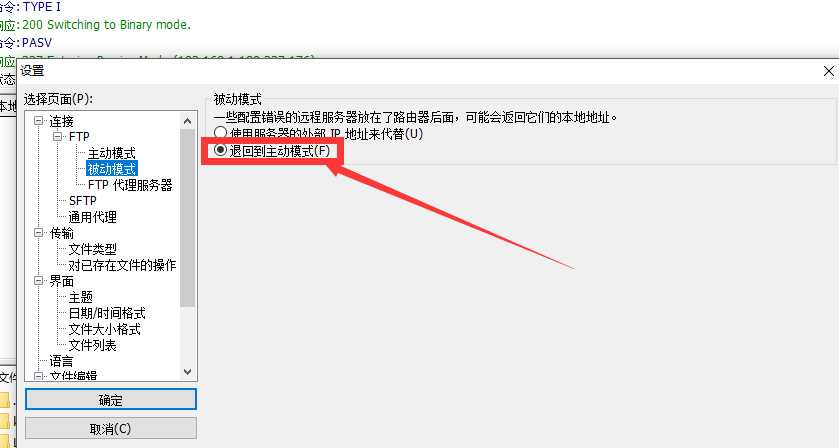 这是FTP的主动模式和被动模式造成的,所以我选择了一个很简单的方式来解决:如下