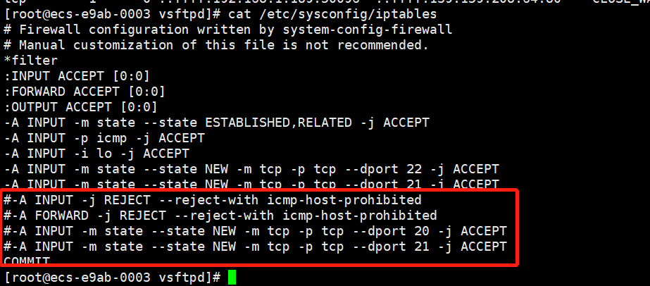 关闭防火墙或者是在防火墙内开放 21 端口即可,如下: