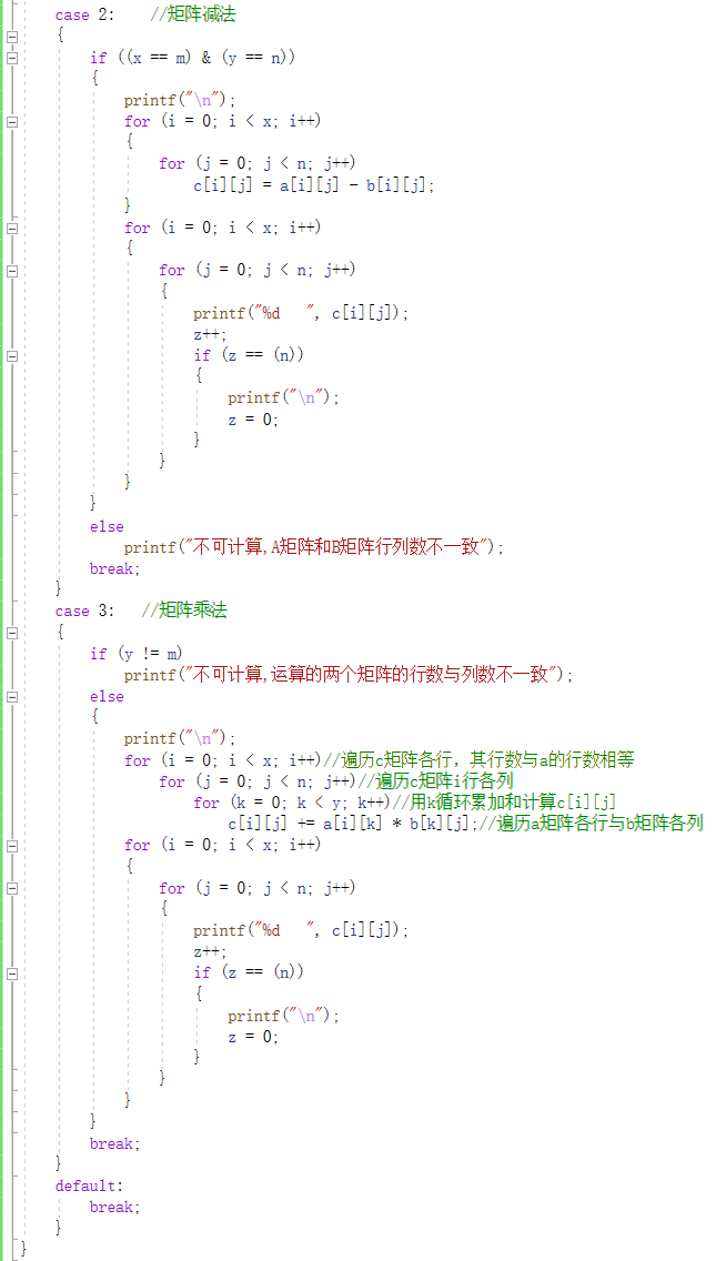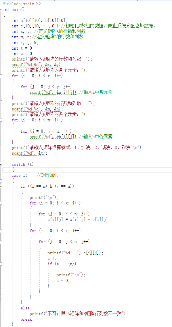 用C编写矩阵的加、减、乘和转置。 用C编写矩阵的加法、减法、乘法和转置。在这里主要用到了二维数组来存储矩阵里的参数,加、减和乘法具体程序如下: 矩阵转置程序如下: 版权声明:本文为qq_53206495原创文章,遵循CC 4.0 BY-SA版权协议,转载请附上原文出处链接和本声明。原文链接:https://blog.csdn.net/qq_53206495/article/details/120435736