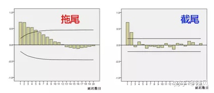 拖尾指序列以指数率单调递减或震荡衰减,而截尾指序列从某个时点变得非常小: