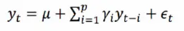 yt是当前值,u是常数项,P是阶数,ri是自相关系数,et是误差,即 白噪声。