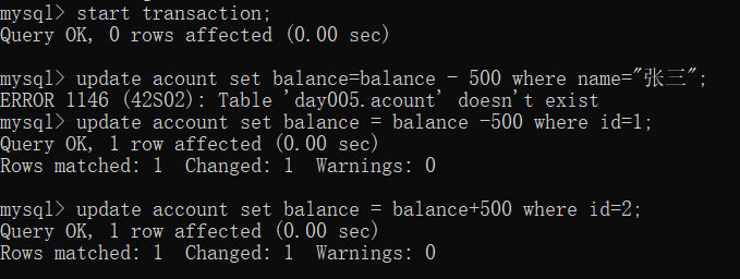 UPDATE account set balance=balance-500 where `name` = '张三';