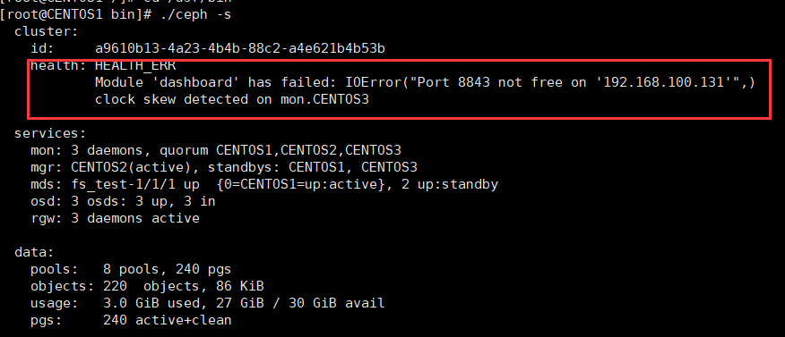 Module 'dashboard' has failed: IOError("Port 8843 not free on '192.168.100.131'",)