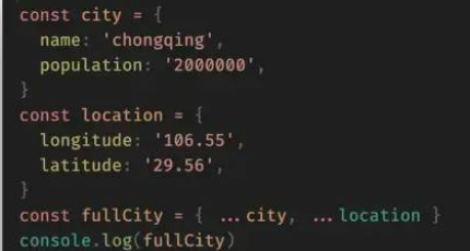合并多个对象,{...a,...b}后面相同属性覆盖前面属性的值 版权声明:本文为jieweiwujie原创文章,遵循CC 4.0 BY-SA版权协议,转载请附上原文出处链接和本声明。原文链接:https://blog.csdn.net/jieweiwujie/article/details/125677480