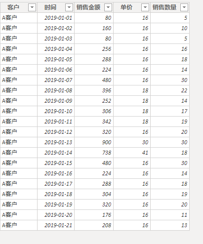这是一份案例数据,连续的,日期没有中断的。将其导入PowerBI中。