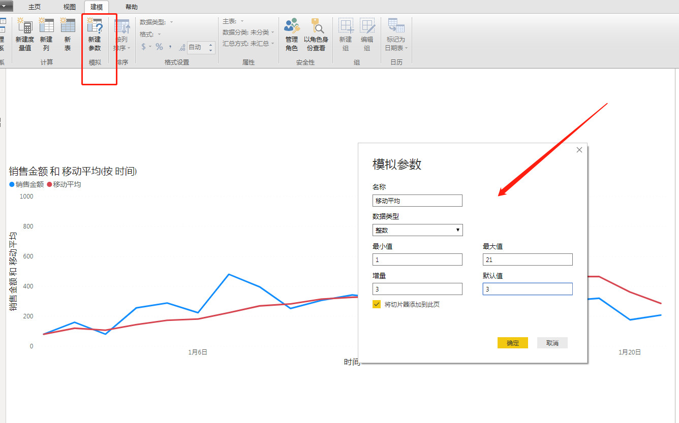 在建模窗口视图下添加“参数”,填写自己的数据参数,点击确定。