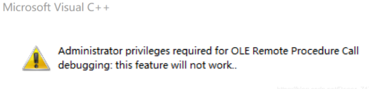 问题2:运行形式出现Administrator privileges required for OLE Remote Procedure Call debugging: this feature will not work.