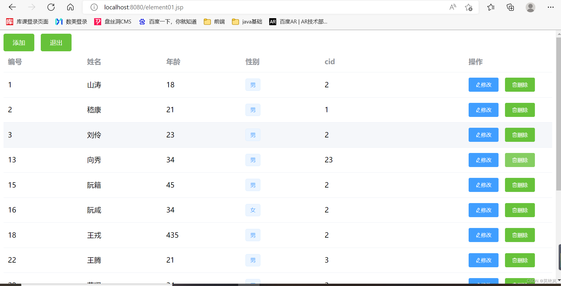 我们发现在查询过程中,一页内显示出的数据过于多,我们在此加上分页操作:前端相关代码已在上面信息页面前端页面布局发布过
