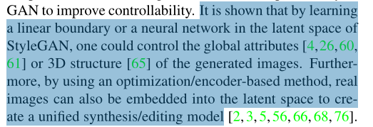 首先指出在gan的生成是从latent space中random code开始的,说出传统gan不可控。说stylegan的generated image is conditioned on a set of coarse-to-fine latent codes。但是这些latent code任然很混淆(确实)。