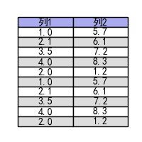 最先找到的是日本人开发的pytab库,它是基于 matplotlib 来画图的,默认参数下生成的表格外观一般般,而且显示不了中文字符,字体也很小,效果不理想。