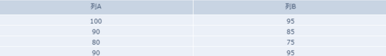 draw_table(['列A', '列B'], [[100, 90, 80, 90], [95, 85, 75, 95]])