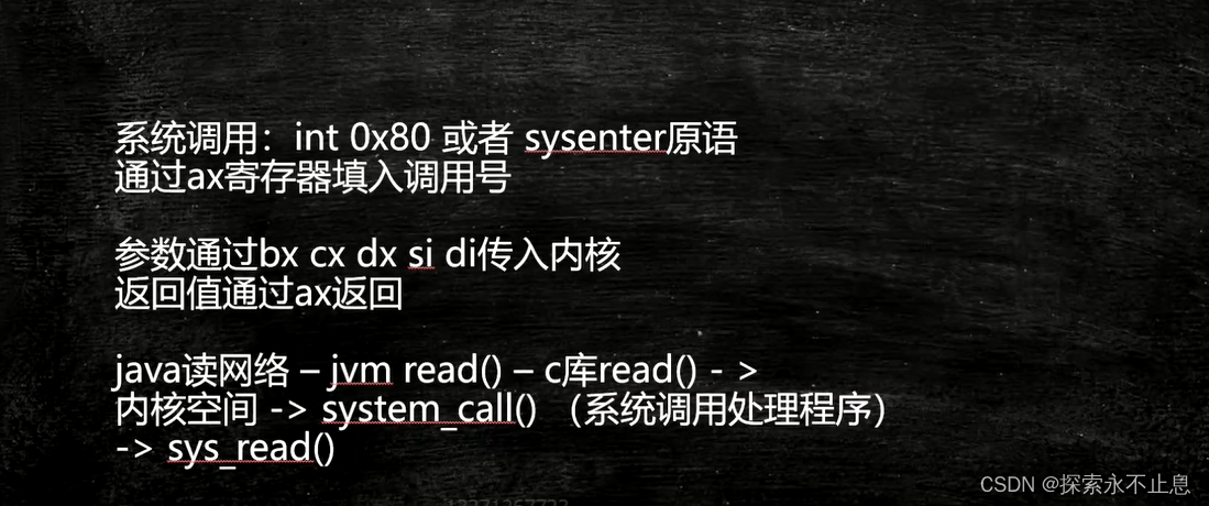 4、当系统调用结束后,CPU 寄存器需要恢复原来保存的用户态,然后再切换到用户空间,继续运行进程。