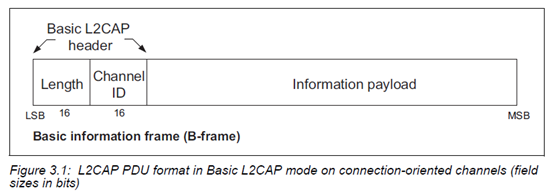 1、CONNECTION-ORIENTED CHANNELS IN BASIC L2CAP MODE(Basic information frame即B-frame),格式如下图所示: