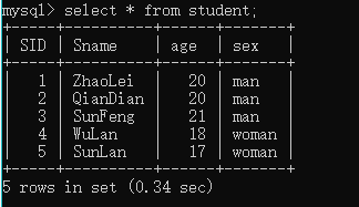 student 表存储的数据如下: