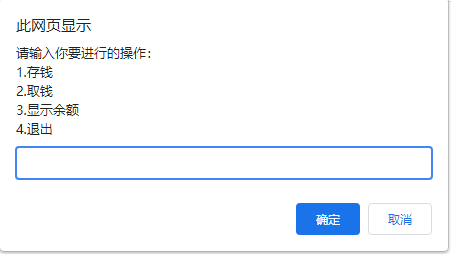 var num = prompt('请输入你要进行的操作:\n1.存钱\n2.取钱\n3.显示余额\n4.退出')