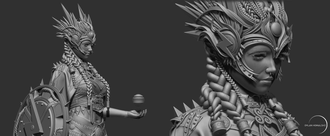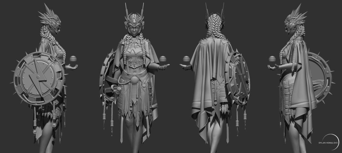 将大型调整好的中模放入ZBrush里面,进行高模的雕刻和细节的制作;高模细节多,面数高,游戏引擎拖不动,从而产生拓补低模的概念,低模完全符合引擎要求和布线规则。而此时的高模作用是为了把高模的细节投射到低模上达到更佳极致的效果又能在引擎中运行。