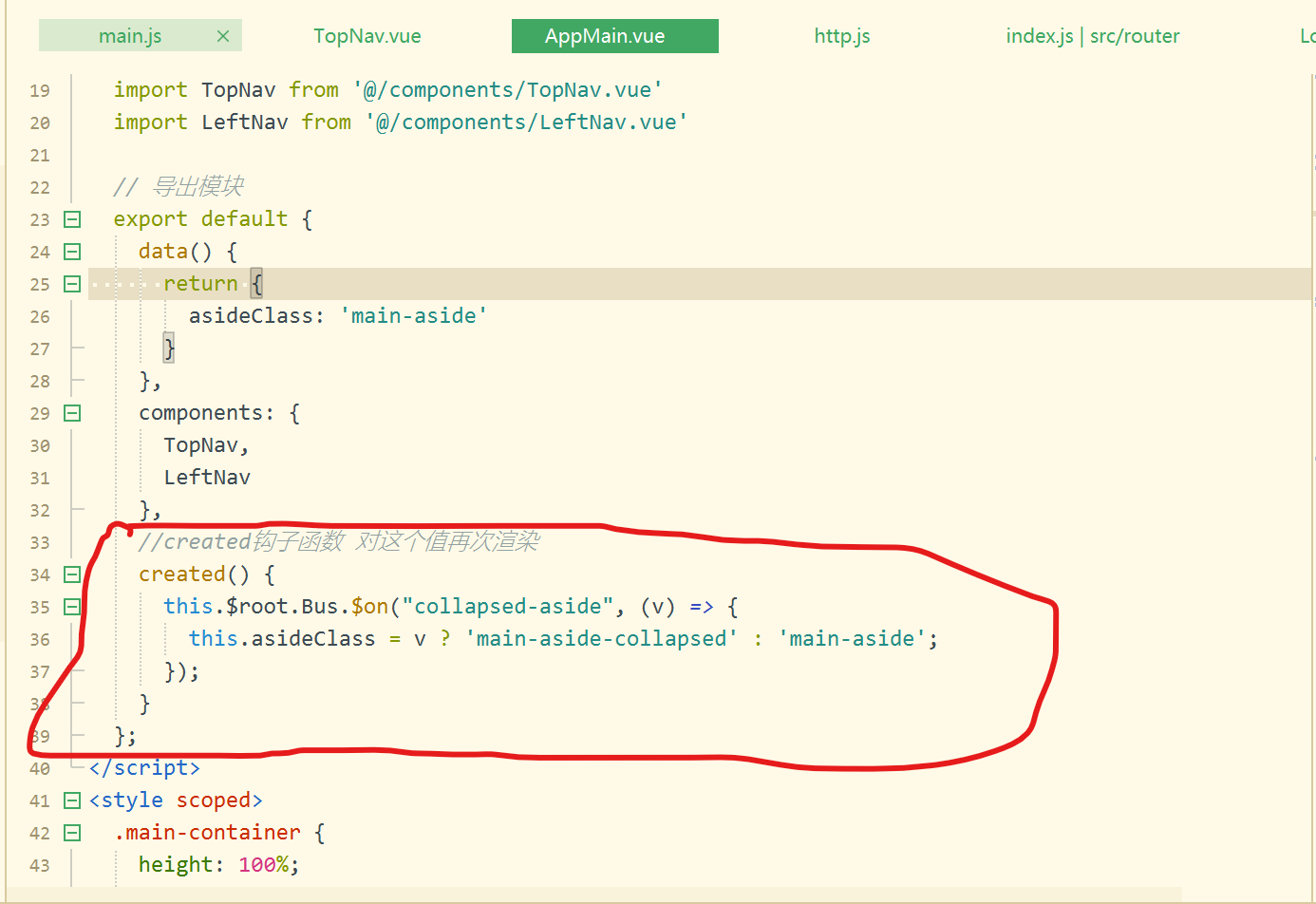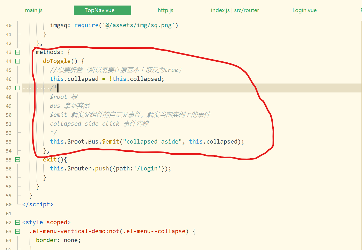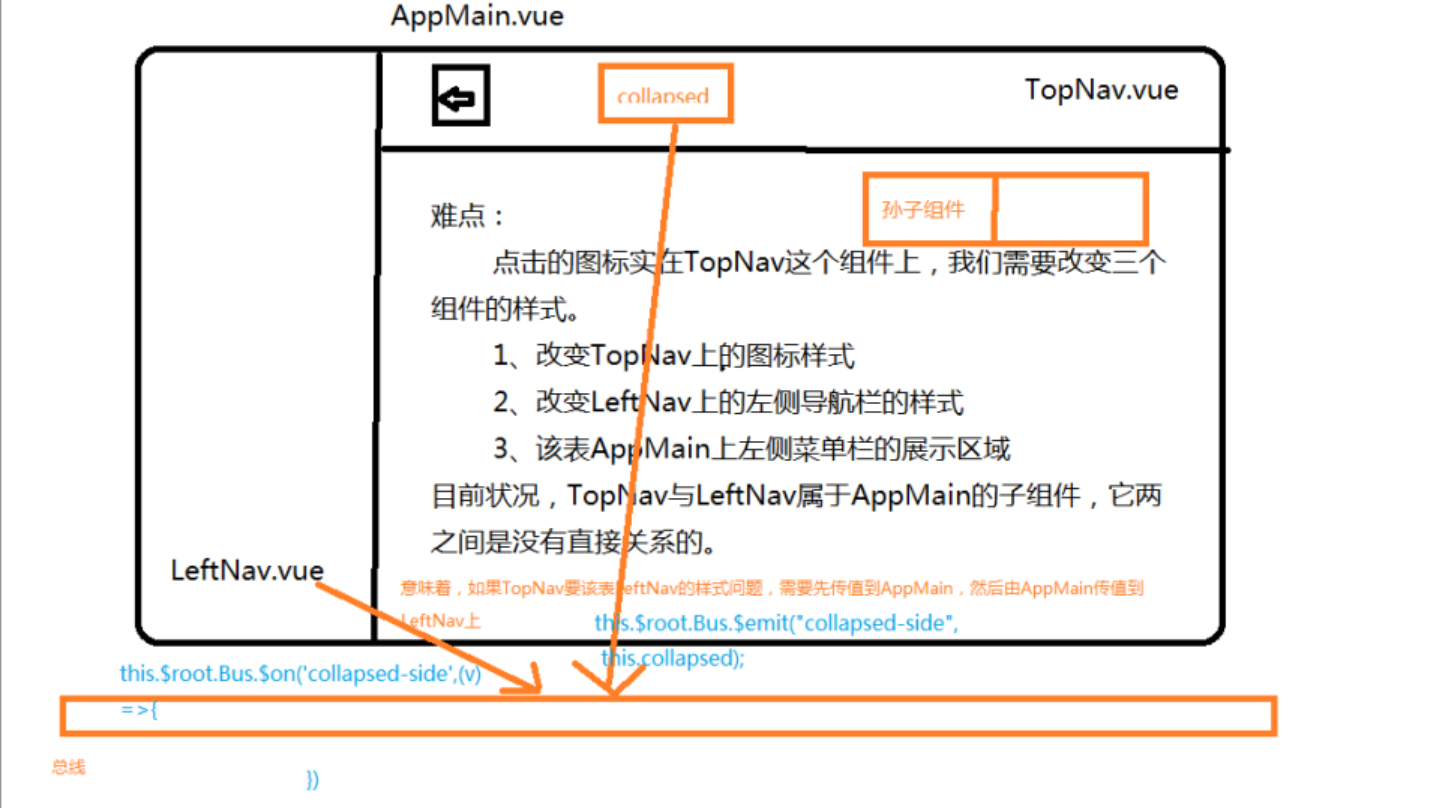 ④LeftNav.vue(左侧菜单栏的收缩功能,接收到样式进行替换)