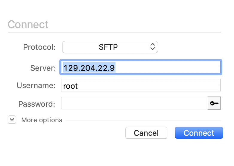 之后出现这样的页面,它还有其他模式的,我没有使用到,也不是很熟悉,我需要文件上传,就选择SFTP,之后输入你的端口号,账号,密码就行了