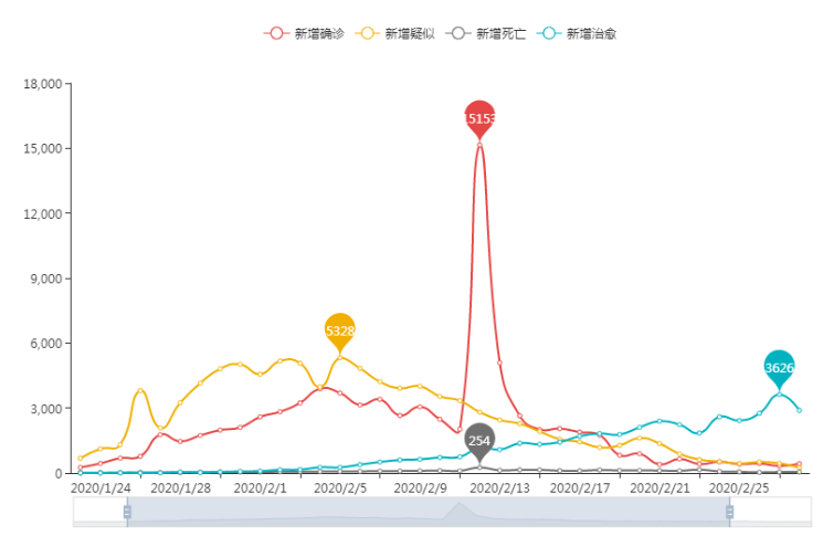业务视角:该方法虽然改变部分数据的映射,从用户角度看,存在一定视觉欺骗性,但是易于大众发现国内疫情趋势的变化规律,好处和缺点都比较明显。