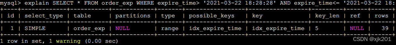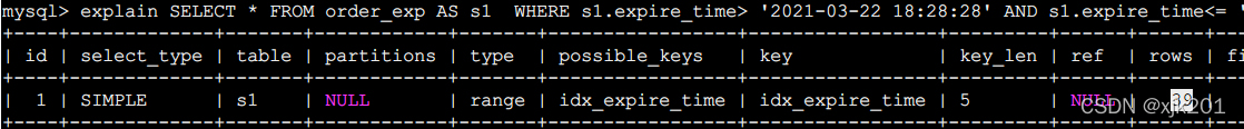 explain SELECT * FROM order_exp WHERE expire_time> '2021-03-22 18:28:28' AND expire_time<='2021-03-22 18:35:09';