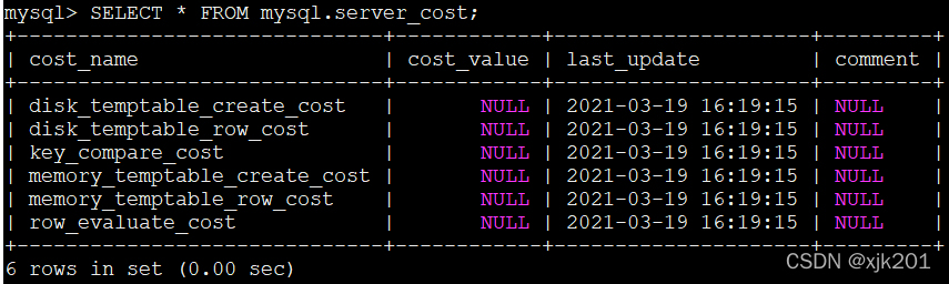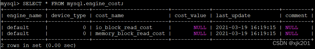 我们从engine_cost表中的内容可以看出来,目前支持的存储引擎成本常数只有两个:
