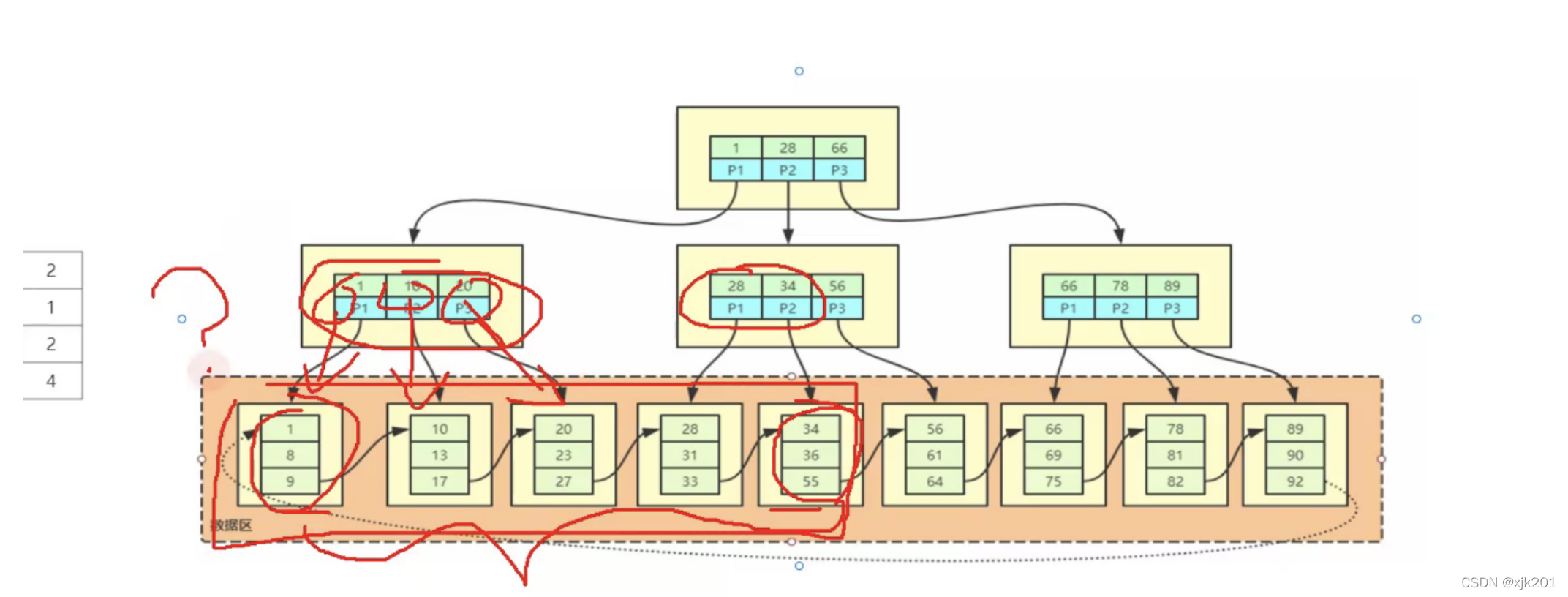 步骤3:如果区间最左记录和区间最右记录相隔不太远(在MySQL 5.7这个版本里,只要相隔不大于10个页面即可),那就可以精确统计出满足expire_time> ‘2021-03-22 18:28:28’ AND expire_time>‘2021-03-22 18:28:28’ AND expire_time<=‘2021-03-22 18:35:09’条件的二级索引记录条数。间隔大于10个页面数的话就是估算了:那么就只沿着区间最左记录向右读10个页面,计算平均每个页面中包含多少记录,然后用这个平均值乘以区间最左记录和区间最右记录之间的页面数量就可以了。那么问题又来了,怎么估计区间最左记录和区间最右记录之间有多少个页面呢?解决这个问题还得回到B+树索引的结构中来。