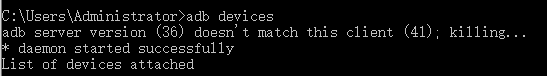 Nox夜神模拟器开启后执行adb devices提示如下: