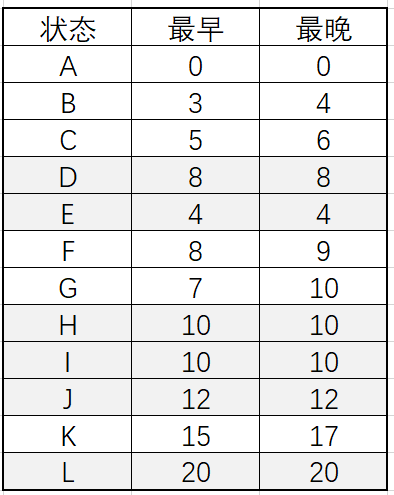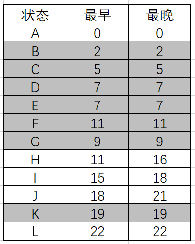 所以BD最早开始时间为第4天,HK最早开始时间为第11天。