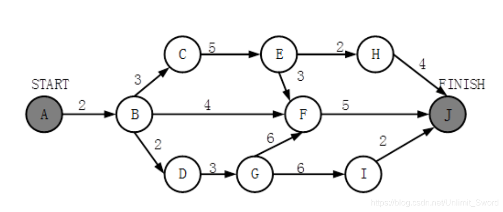 算“最晚时间”时,用最近的节点减去边。例如F=J-5=14-5=9