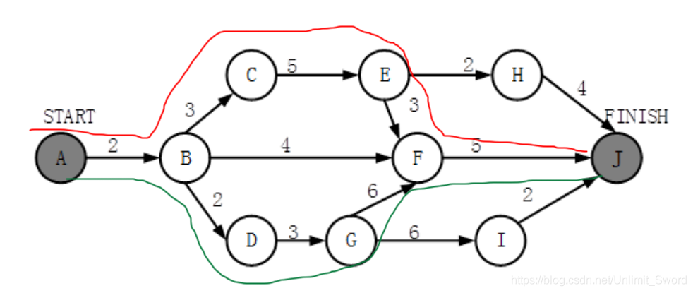 1、关键路径: ABCEFJ = ABDGFJ = 18
