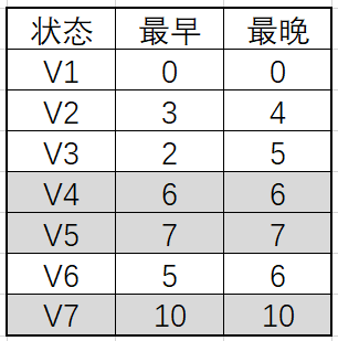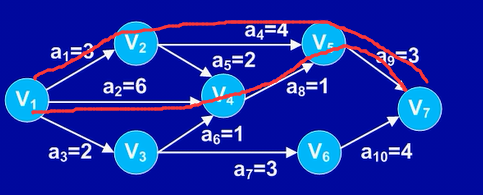 关键路径:V1V2V5V7 = V1V4V5V7 =10