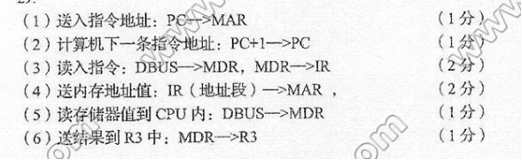 29.写出单总线的CPU结构中,执行读存储器数据到寄存器的指令 LOAD R3,mem的过程