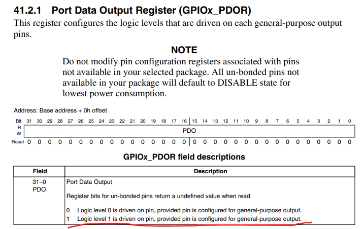 // PDDR配置输入或者输出,PDOR配置值