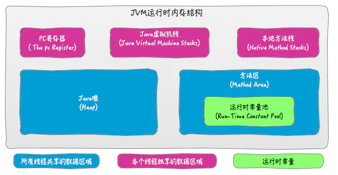 JVM内存结构由JVM虚拟机规范定义。描述的是java程序执行过程中,由JVM管理的不同数据区域,各个区域的功能会有区别