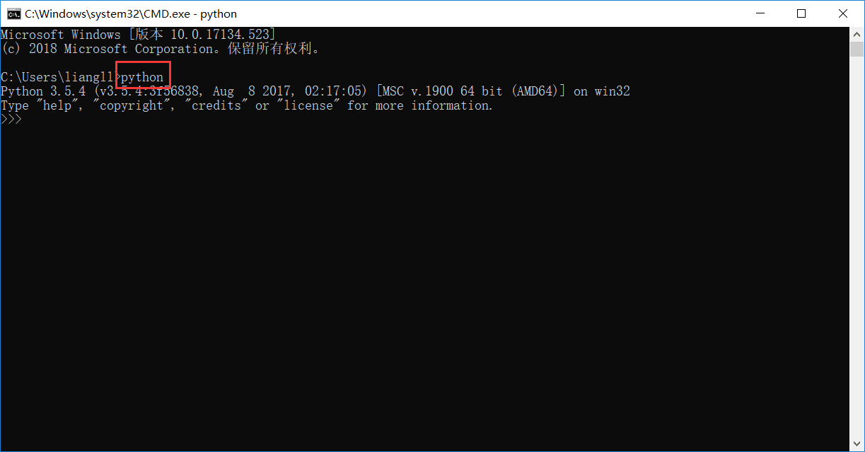 4.测试:win+R cmd 进入命令行界面,输入''python'',Enter键