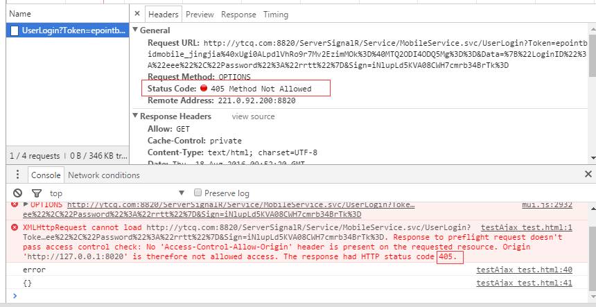 比如origin头部检查不匹配,比如少了一些头部的支持(如常见的X-Requested-With头部),然后服务端就会将response返回给前端,前端检测到这个后就触发XHR.onerror,导致前端控制台报错
