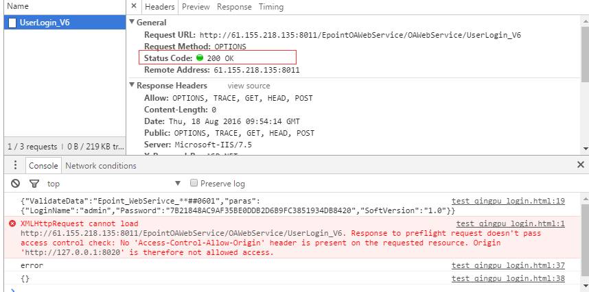 这种现象和第一种和第二种有区别,这种情况下,服务器端后台允许OPTIONS请求,并且接口也允许OPTIONS请求,但是头部匹配时出现不匹配现象